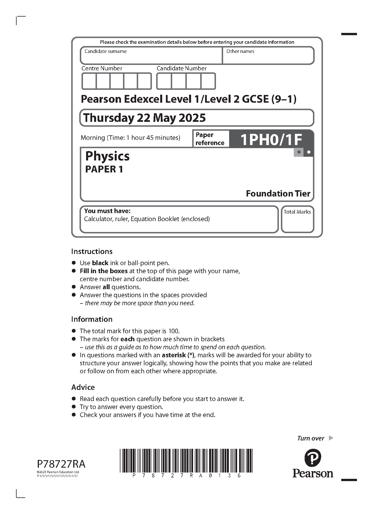 2025 Pearson Edexcel GCSE Physics Paper 1F (1PH0/1F)
