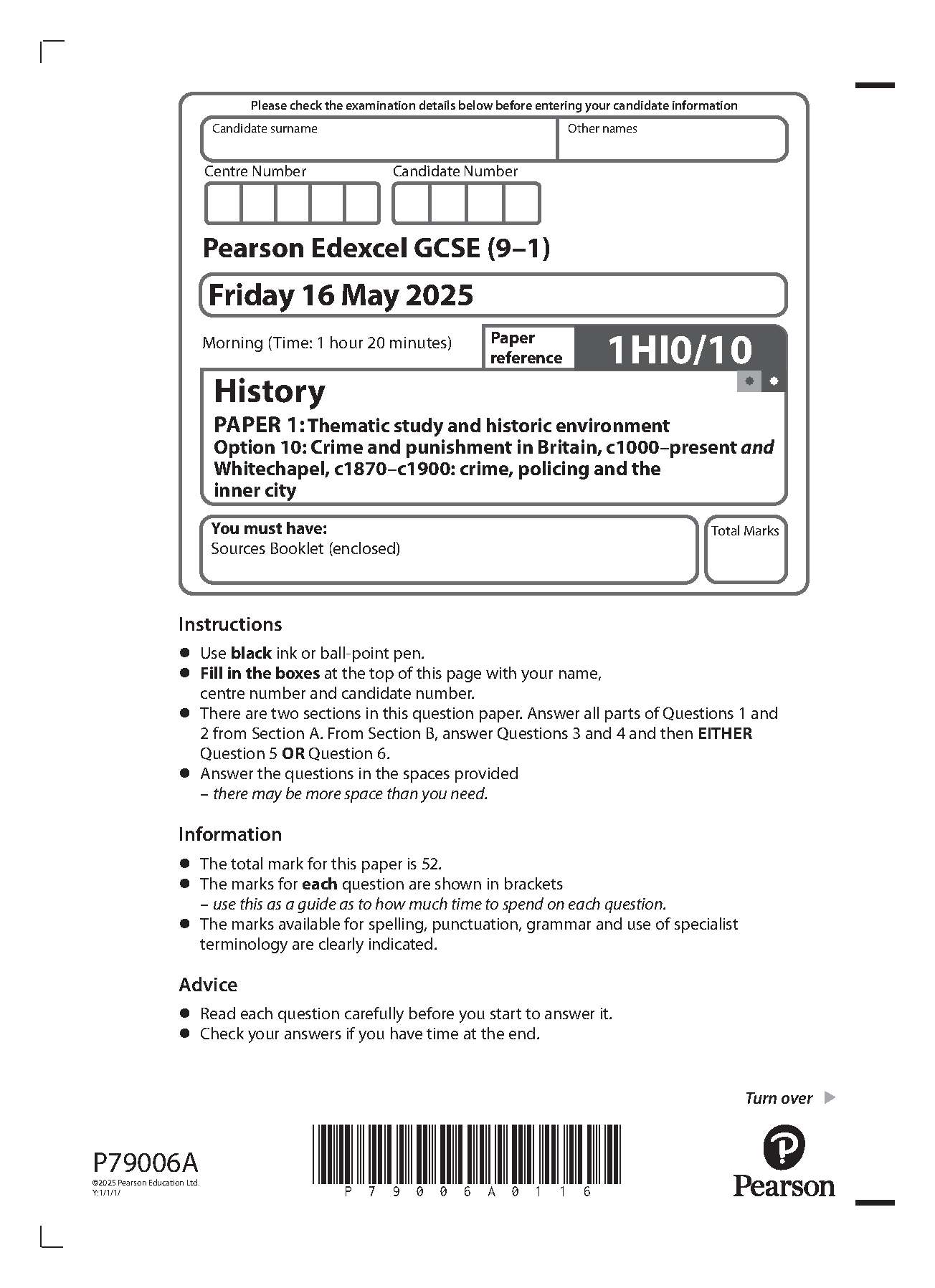 2025 Pearson Edexcel GCSE History Paper 1 (1HI0/10: Thematic study and historic environment)