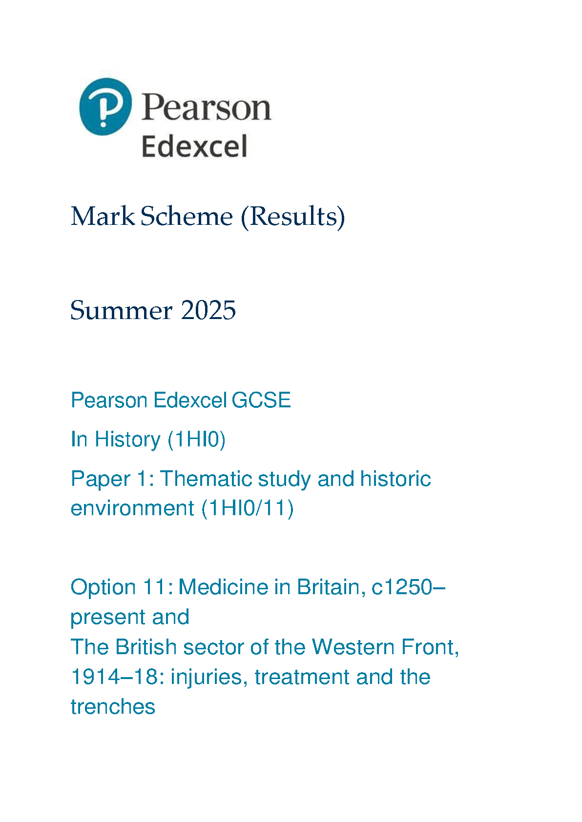 2025 Pearson Edexcel GCSE History Mark Scheme Paper 1 (1HI0/11: Thematic study and historic environment)