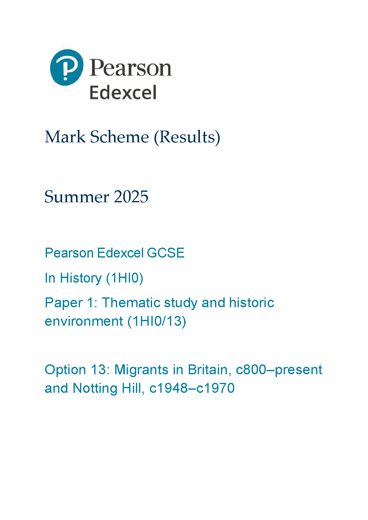 2025 Pearson Edexcel GCSE History Mark Scheme Paper 1 (1HI0/13: Thematic study and historic environment)