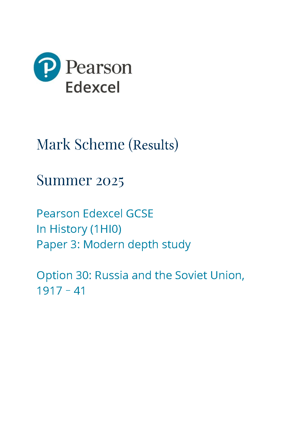 2025 Pearson Edexcel GCSE History Mark Scheme Paper 3 (1HI0/30: Modern depth study)
