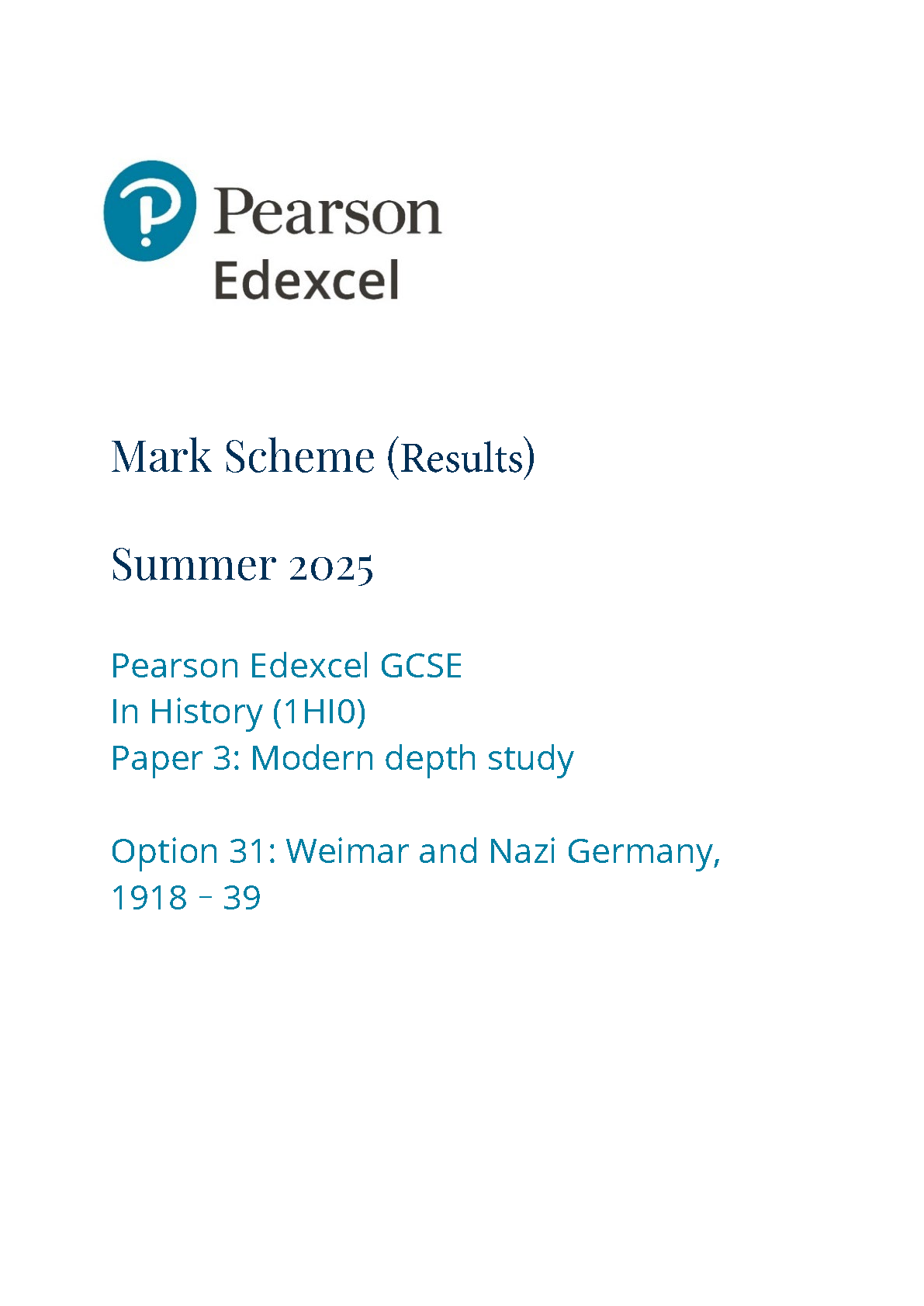2025 Pearson Edexcel GCSE History Mark Scheme Paper 3 (1HI0/31: Modern depth study)