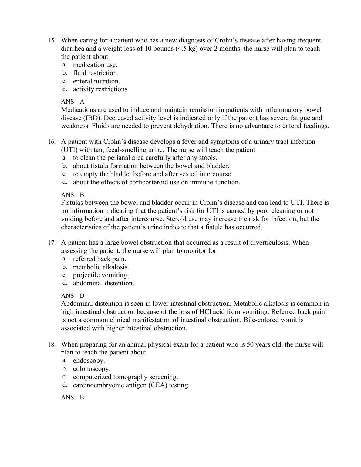 Test Bank For Lower GI (Chapter 43: Nursing Management: Lower Gastrointestinal Problems)