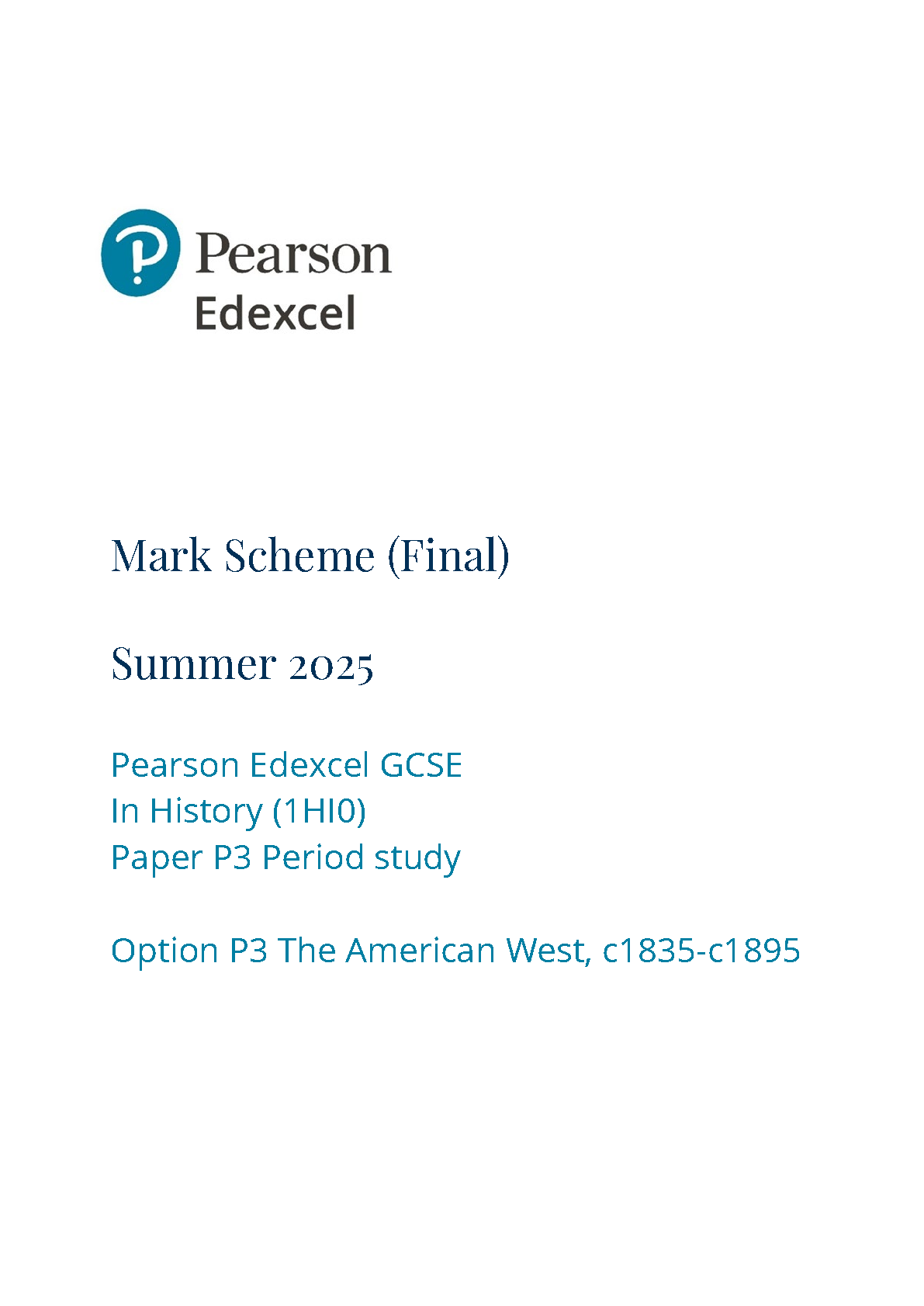 2025 Pearson Edexcel GCSE History Mark Scheme BOOKLET P3 (1HI0/P3: The American West, c1835–c1895)