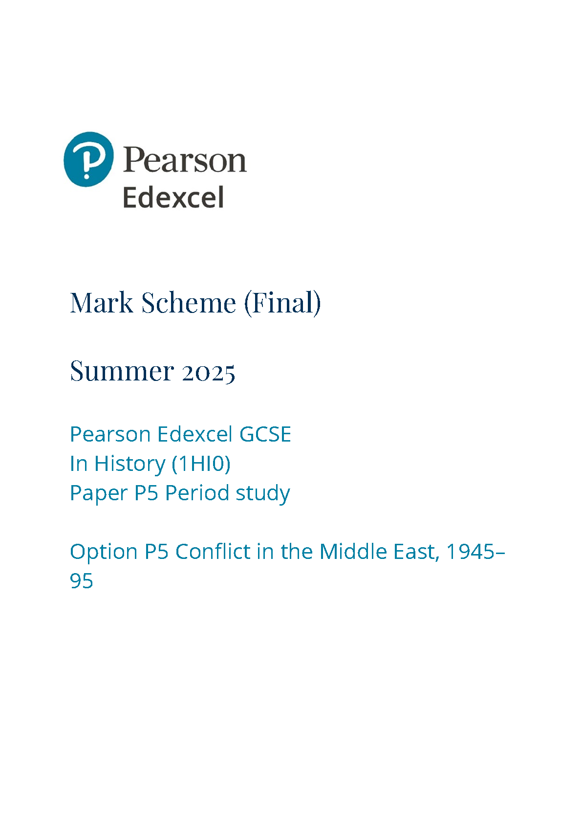 2025 Pearson Edexcel GCSE History Mark Scheme BOOKLET P5 (1HI0/P5: Conflict in the Middle East, 1945–95)