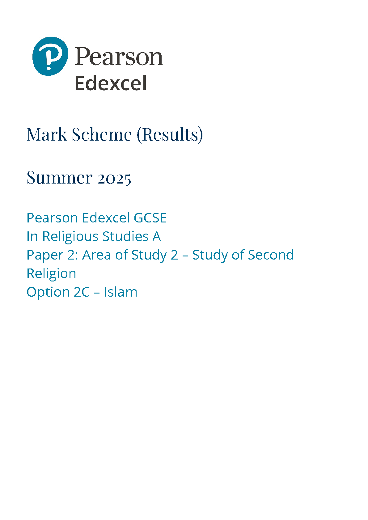 2025 Pearson Edexcel GCSE Religious Studies A Mark Scheme Paper 2C (1RA0/2C: Area of Study 2 – Study of Second Religion)