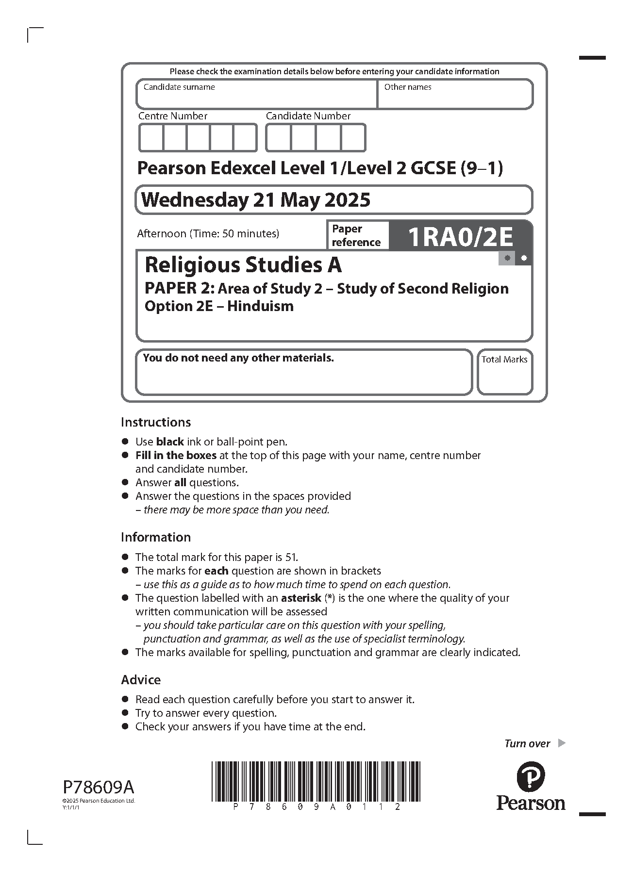 2025 Pearson Edexcel GCSE Religious Studies A Paper 2E (1RA0/2E: Area of Study 2 – Study of Second Religion)