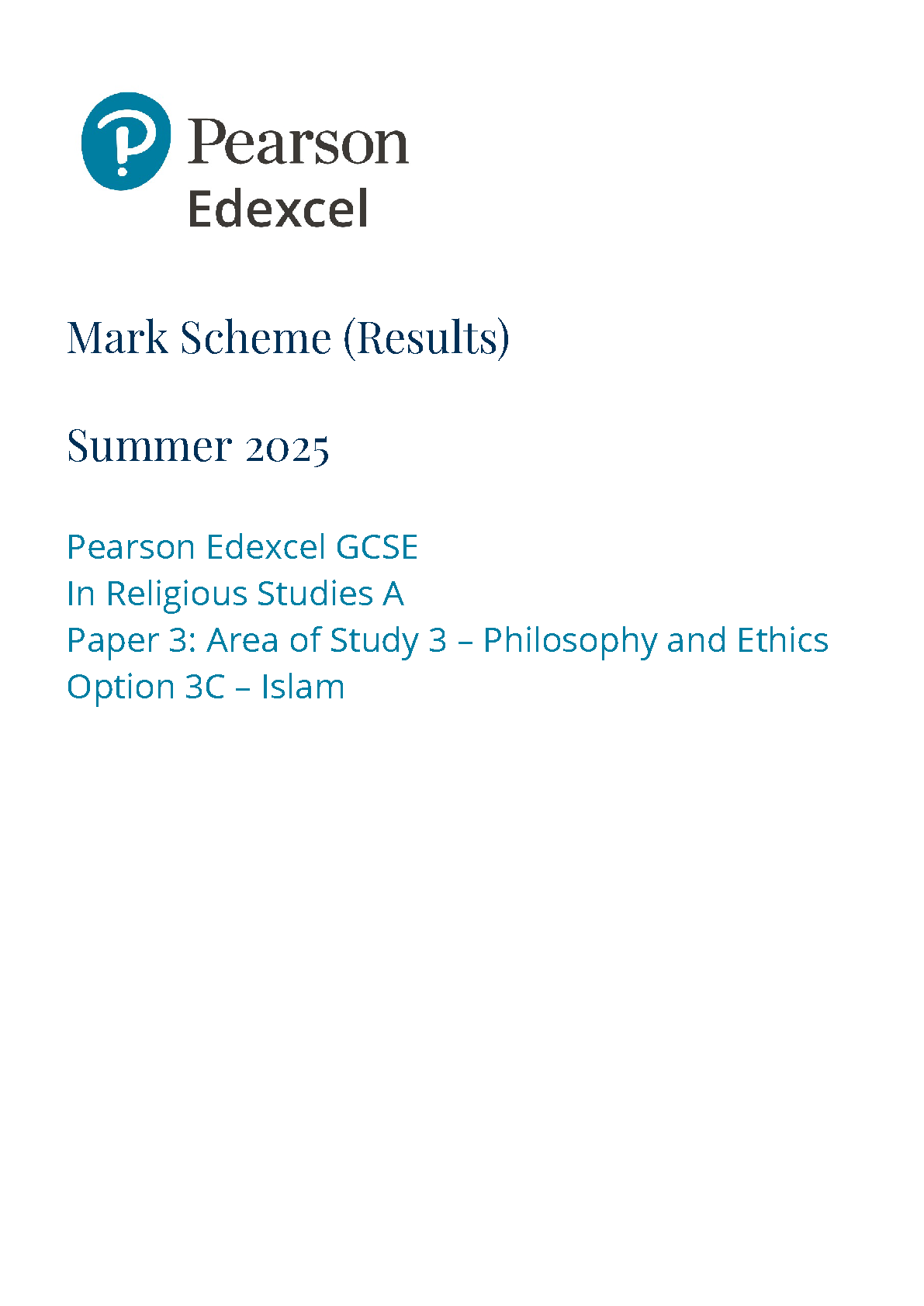 2025 Pearson Edexcel GCSE Religious Studies A Mark Scheme Paper 3C (1RAO/3C: Area of Study 3 – Philosophy and Ethics)
