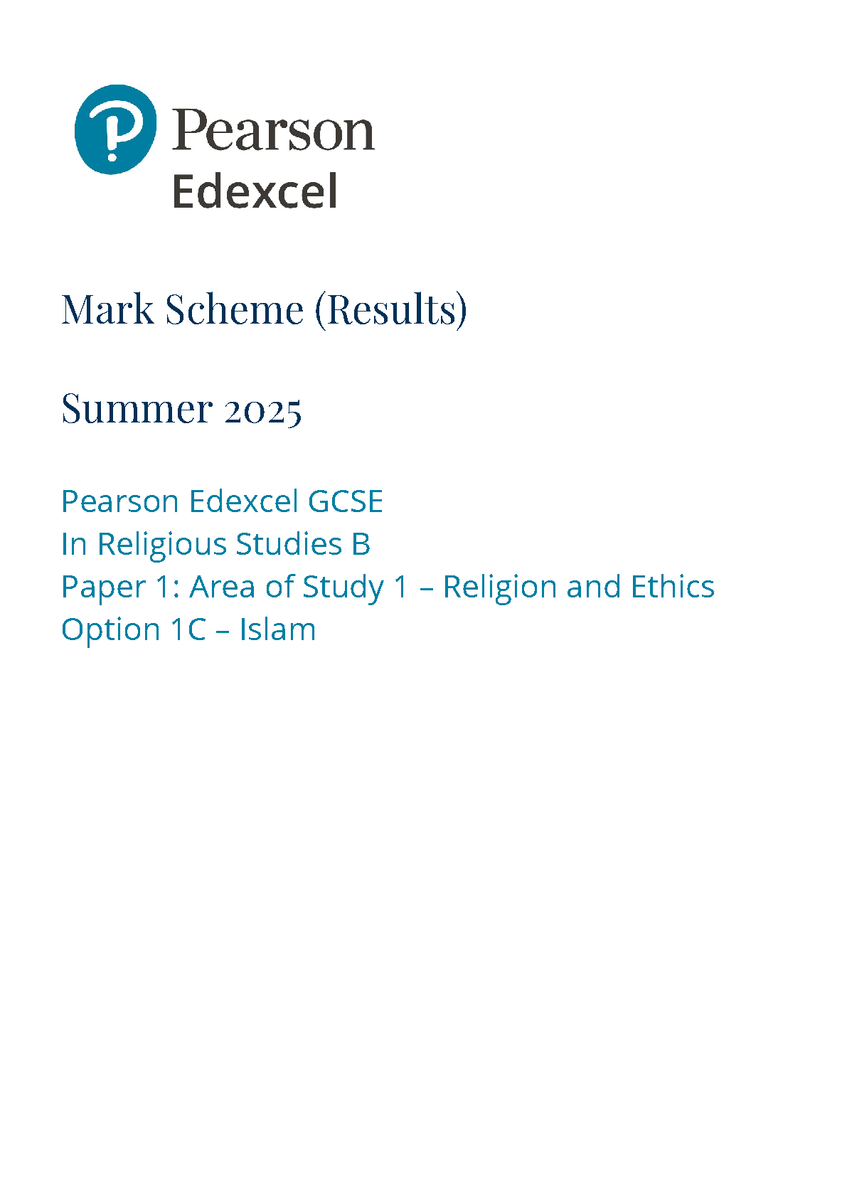 2025 Pearson Edexcel GCSE Religious Studies B Mark Scheme Paper 1C (1RB0/1C: Area of Study 1 – Religion and Ethics)