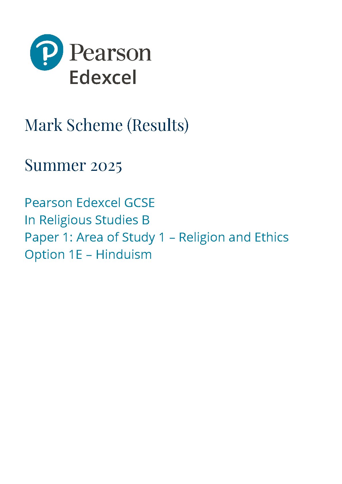 2025 Pearson Edexcel GCSE Religious Studies B Mark Scheme Paper 1E (1RB0/1E: Area of Study 1 – Religion and Ethics)