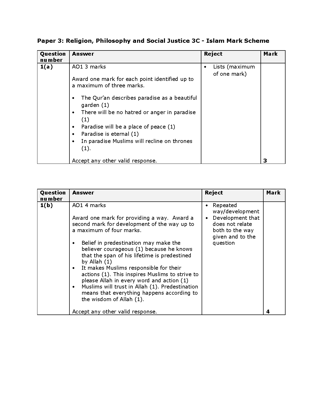 2025 Pearson Edexcel GCSE Religious Studies B Mark Scheme Paper 3C (1RB0/3C: Area of Study 3 – Religion, Philosophy and Social Justice)