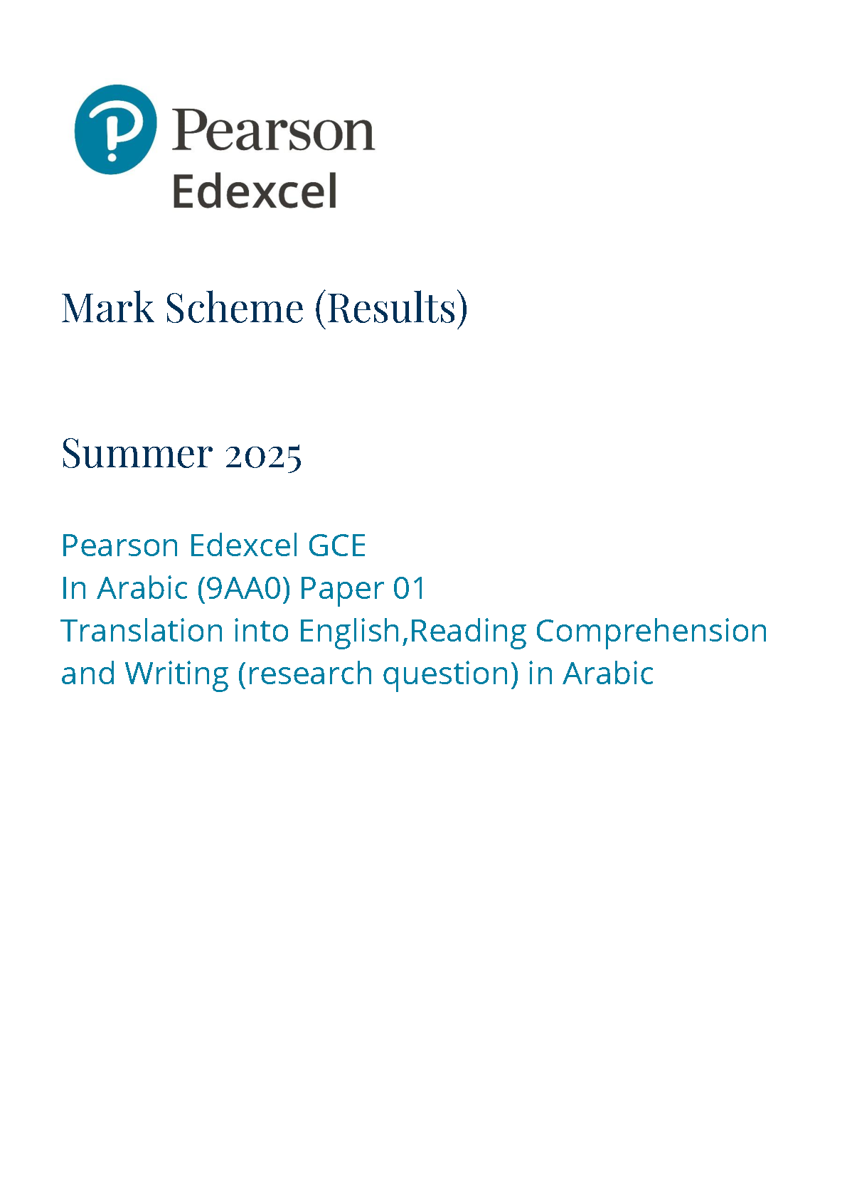 2025 Pearson Edexcel A Level Arabic Mark Scheme Paper 1 (9AA0/01)