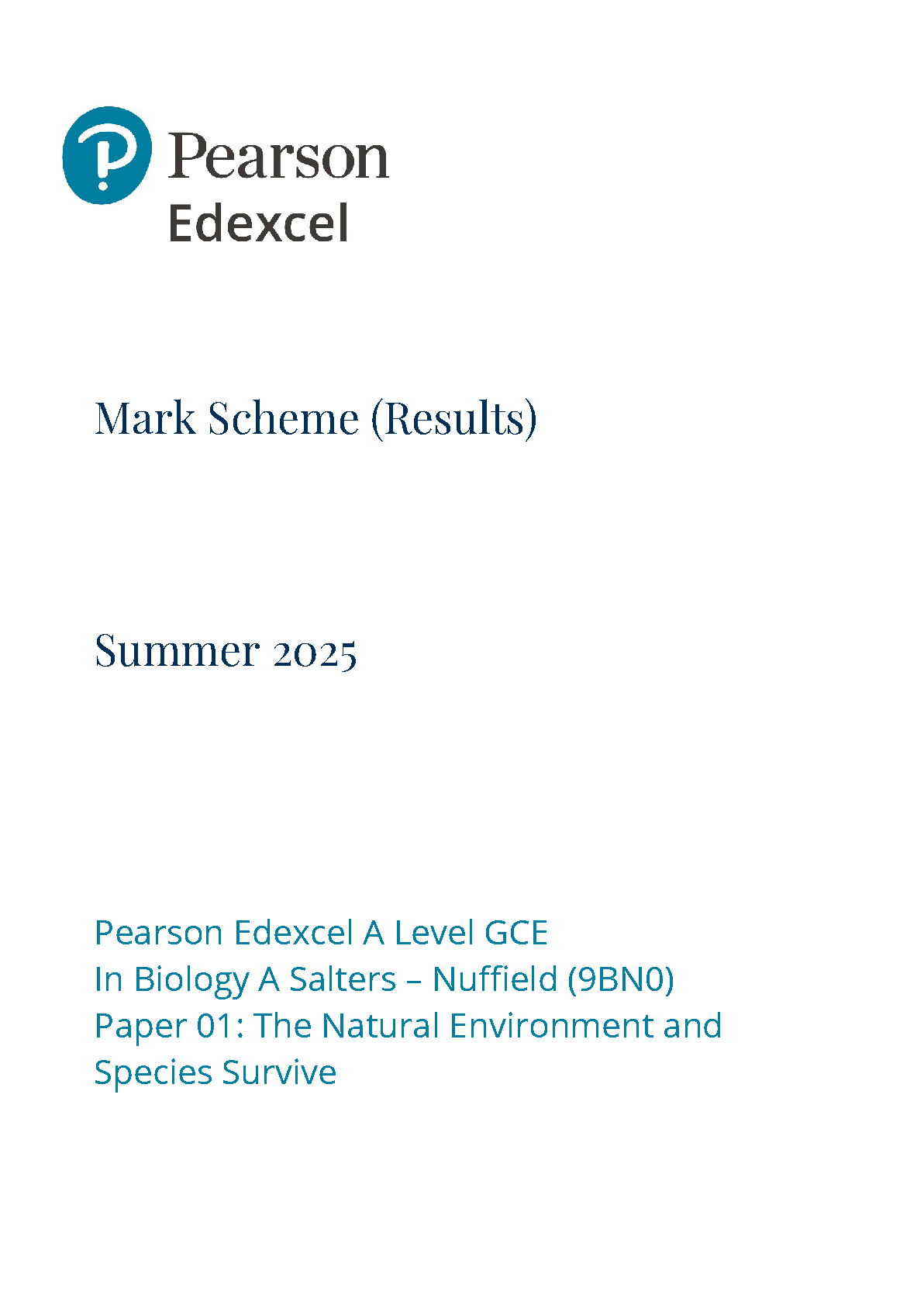 2025 Pearson Edexcel A Level Biology A (Salters Nuffield) Mark Scheme Paper 1 (9BN0/01: The Natural Environment and Species Survival)