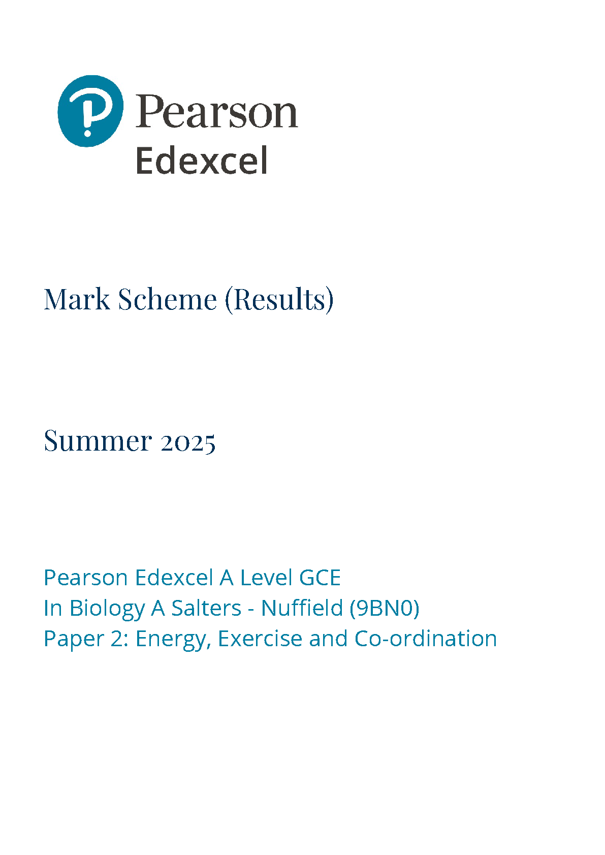 2025 Pearson Edexcel A Level Biology A (Salters Nuffield) Mark Scheme Paper 2 (9BN0/02: Energy, Exercise and Co-ordination)