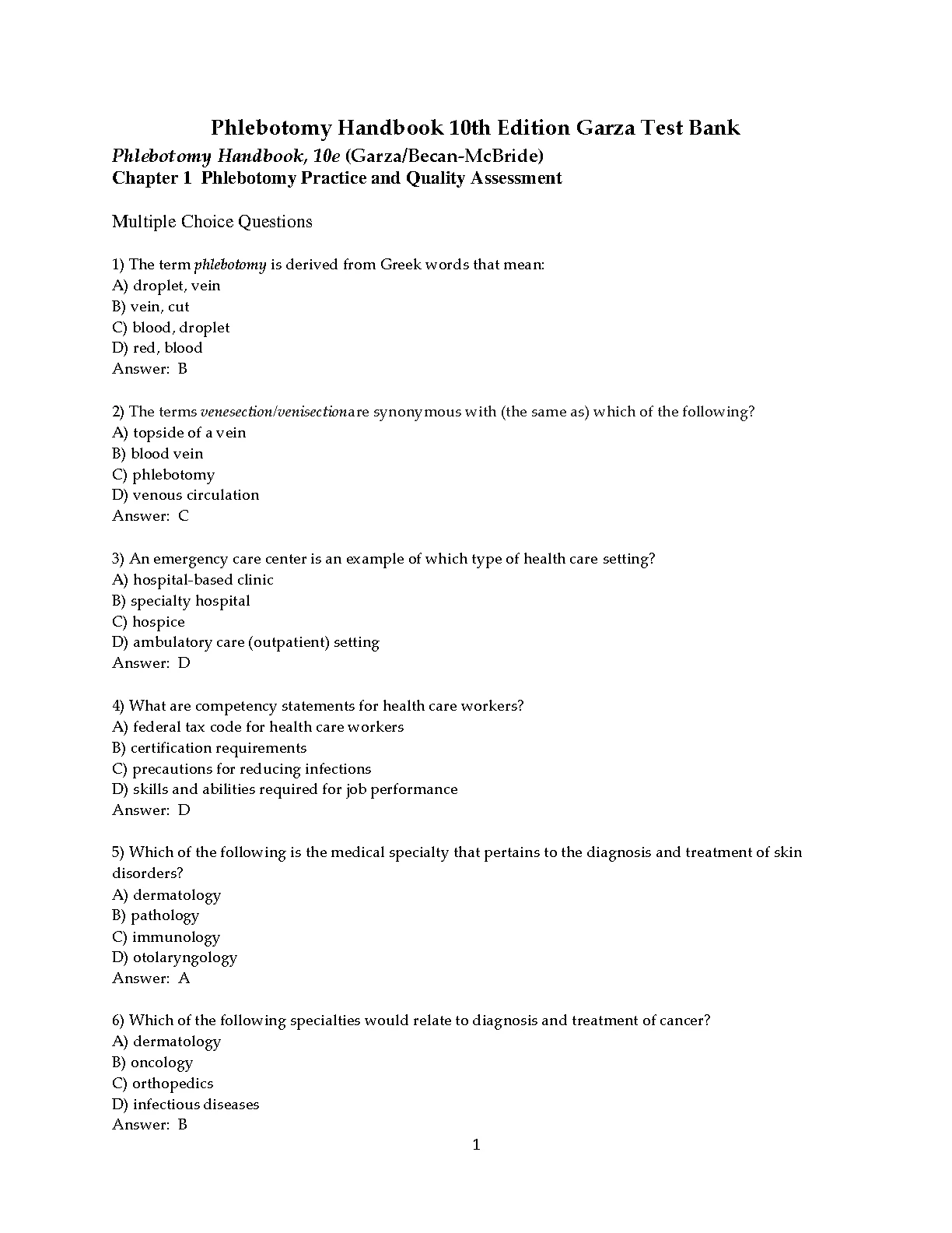 Test Bank For Phlebotomy Handbook, 10th Edition BY Garza/Becan-McBride