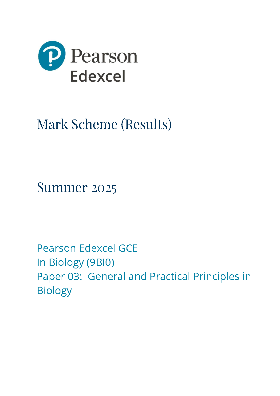 2025 Pearson Edexcel A Level Biology B Mark Scheme Paper 3 (9BI0/03: General and Practical Principles in Biology)