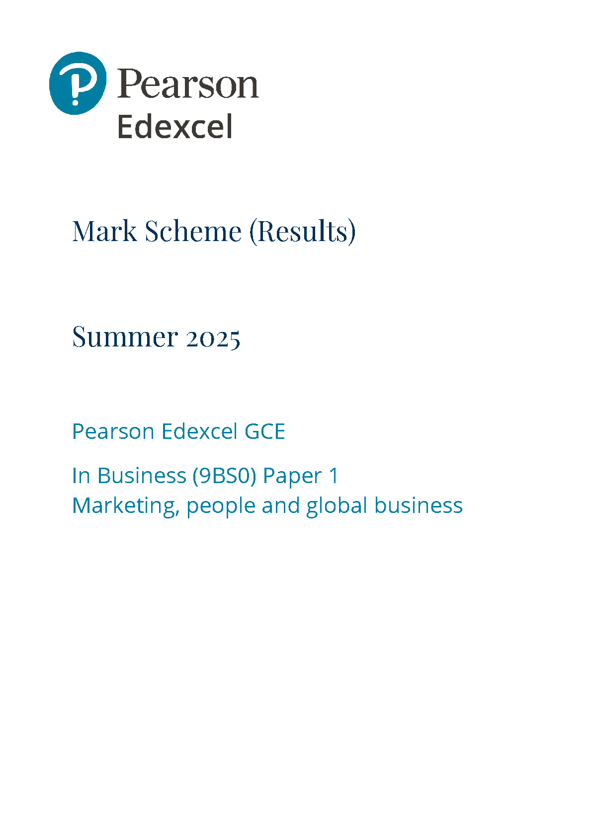 2025 Pearson Edexcel A Level Business Mark Scheme Paper 1 (9BS0/01: Marketing, people and global businesses)
