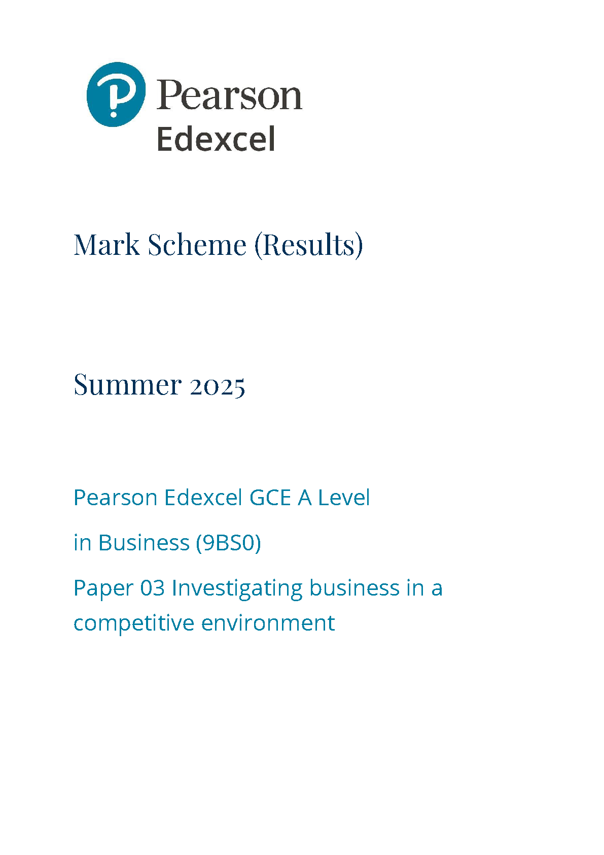 2025 Pearson Edexcel A Level Business Mark Scheme Paper 3 (9BS0/03 : Investigating business in a competitive environment)