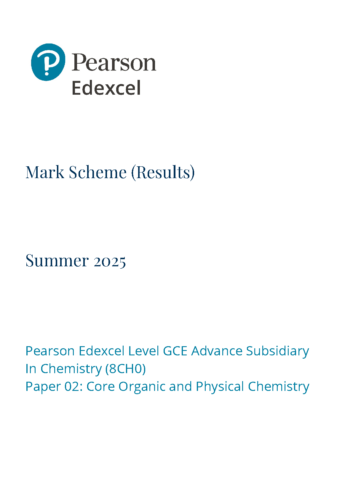2025 Pearson Edexcel As Level Chemistry Mark Scheme Paper 2 (8CH0/02: Core Organic and Physical Chemistry)