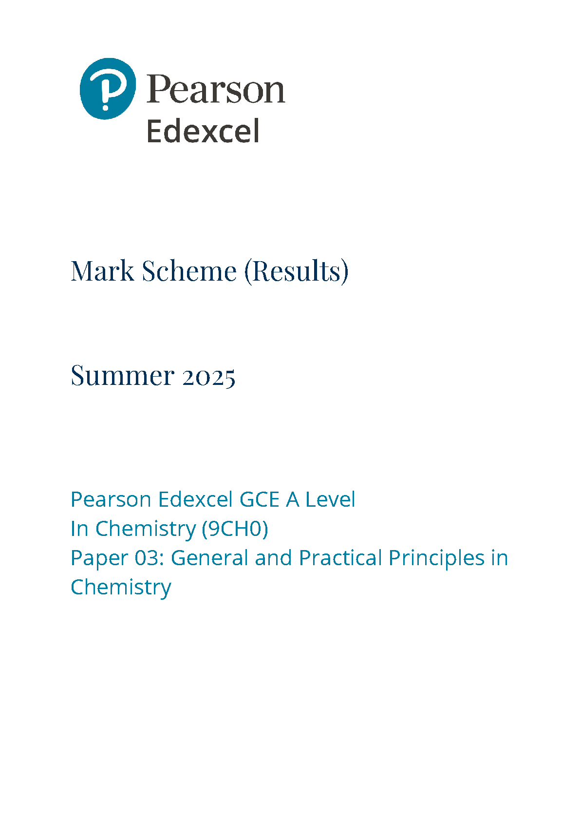 2025 Pearson Edexcel A Level Chemistry Mark Scheme Paper 3 (9CH0/03: General and Practical Principles in Chemistry)