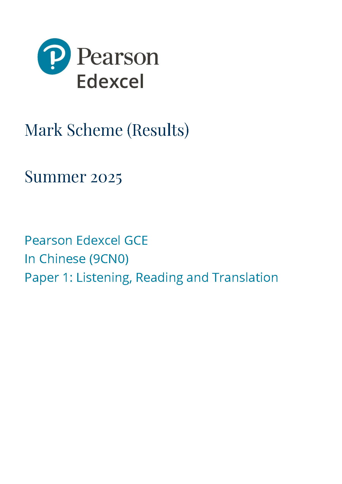 2025 Pearson Edexcel A Level Chinese Mark Scheme Paper 1 (9CN0/01: Listening, Reading and Translation)