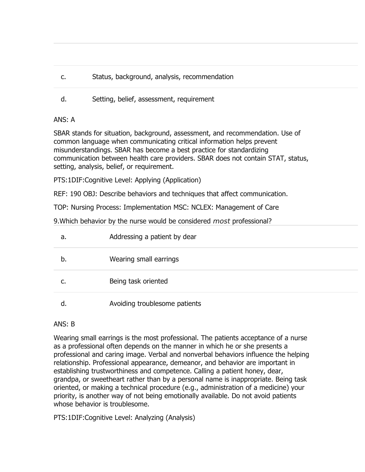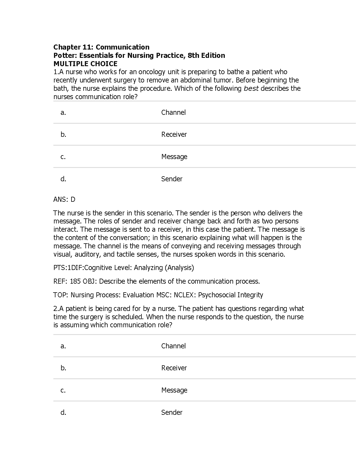 Test Bank For Essentials for Nursing Practice, 8th Edition BY Potter (Chapter 11: Communication)