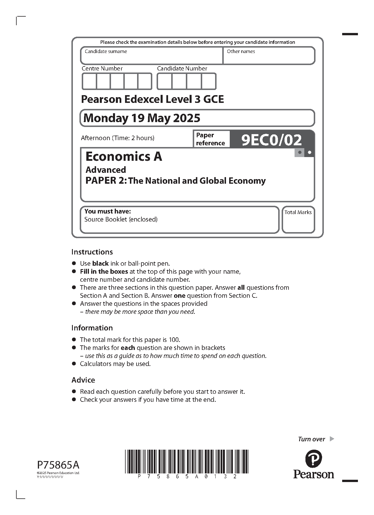 2025 Pearson Edexcel A Level Economics A Paper 2 (9EC0/02: The National and Global Economy)
