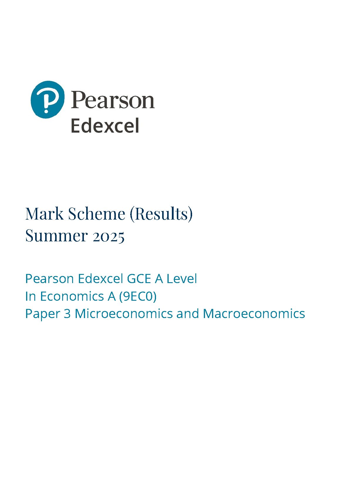 2025 Pearson Edexcel A Level Economics A Mark Scheme Paper 3 (9EC0/03: Microeconomics and Macroeconomics)