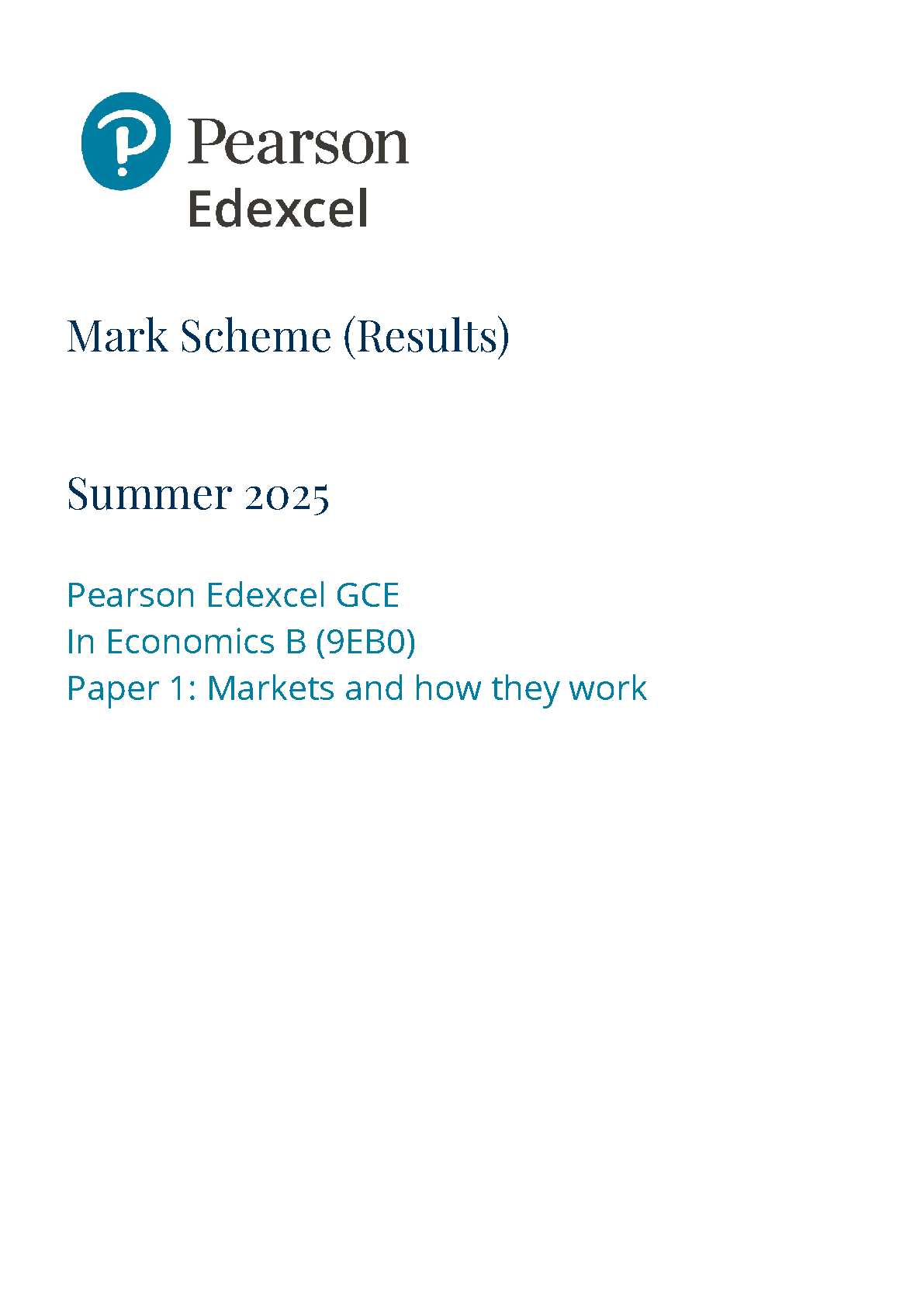 2025 Pearson Edexcel A Level Economics B Paper 1 (9EB0/01: Markets and how they work)