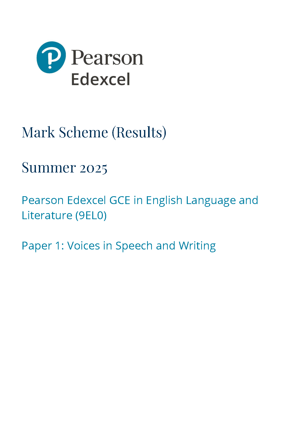 2025 Pearson Edexcel A Level English Language and Literature Mark Scheme Paper 1 (9EL0/01: Voices in Speech and Writing)
