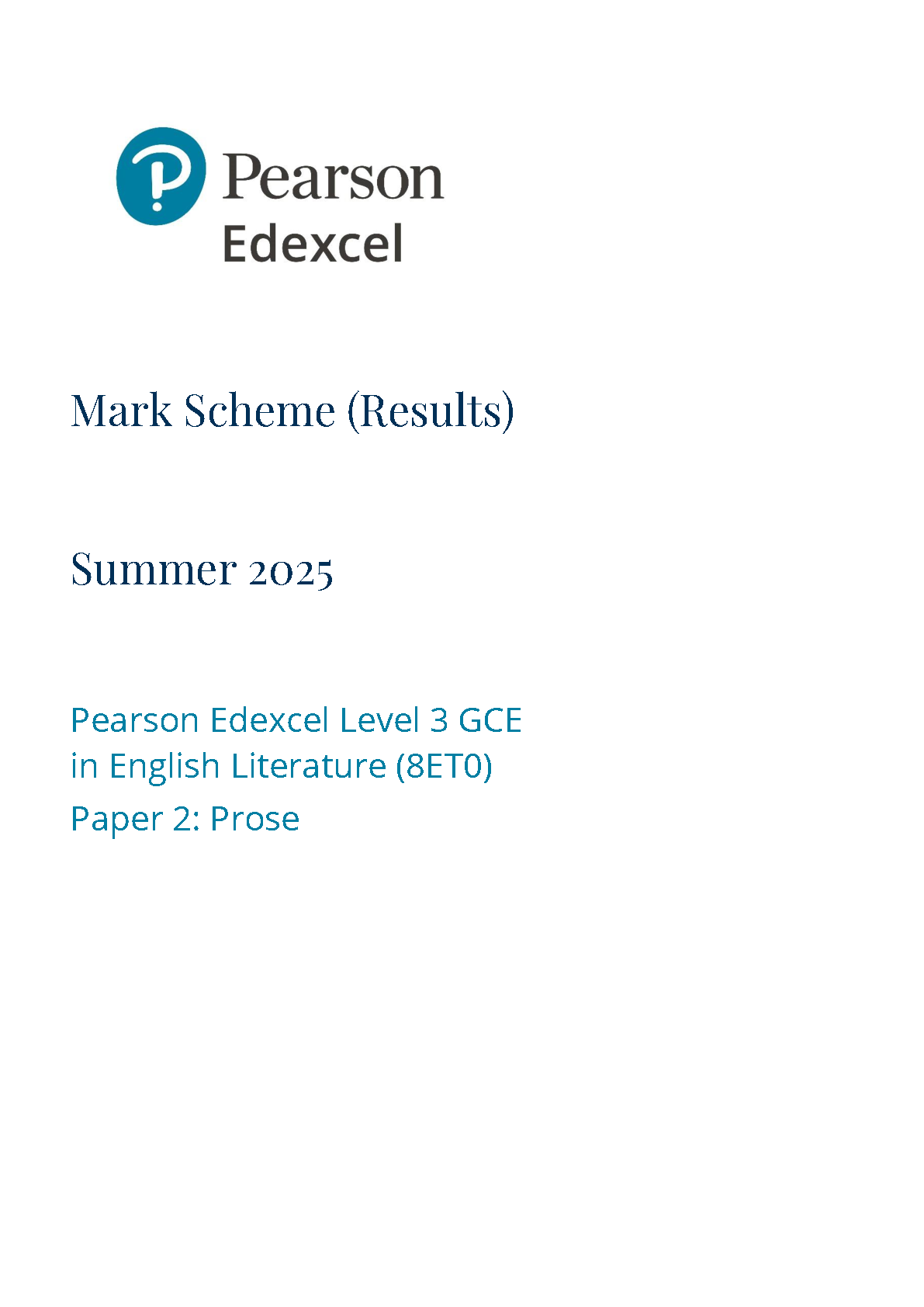 2025 Pearson Edexcel AS Level English Literature Mark Scheme Paper 2 (8ET0/02: Prose)