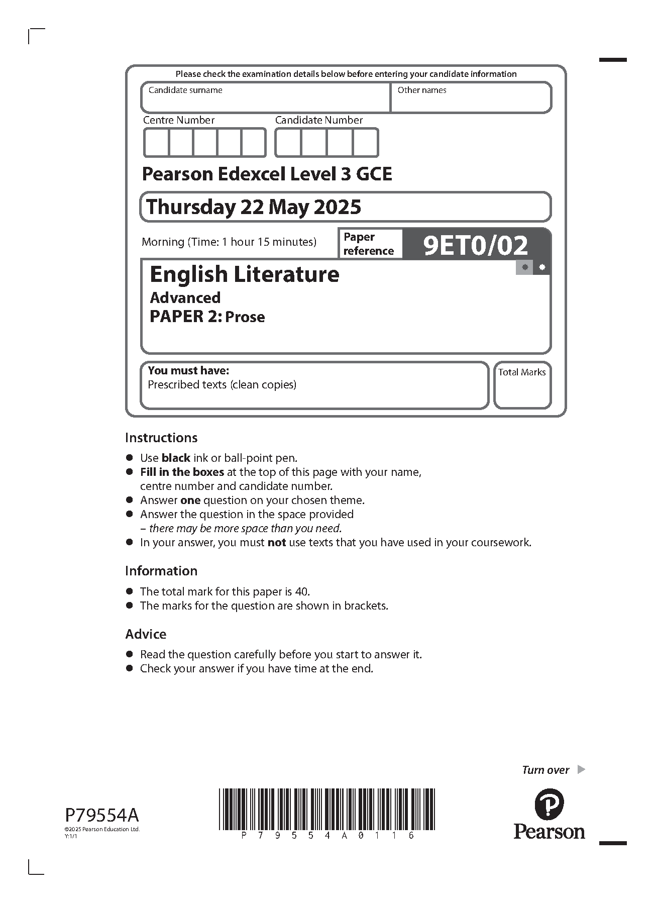 2025 Pearson Edexcel A Level English Literature Paper 2 (9ET0/02: Prose)