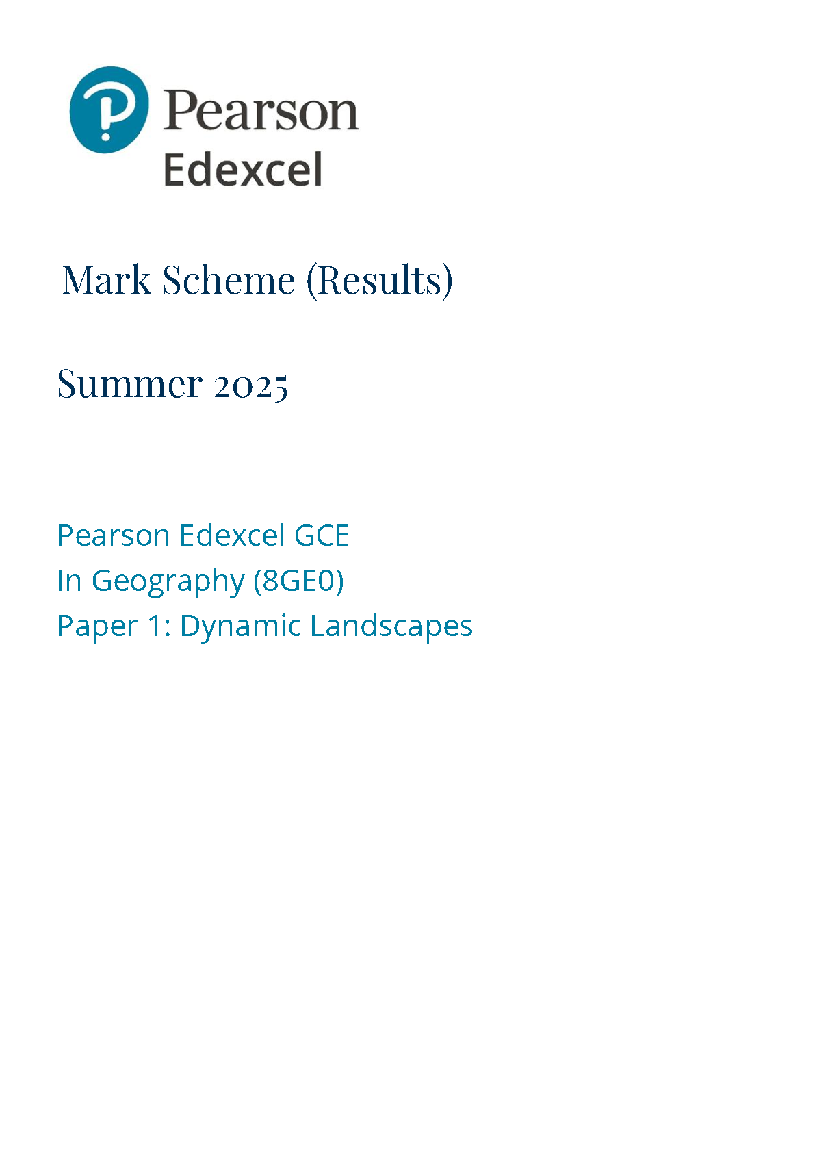 2025 Pearson Edexcel AS Level Geography Mark Scheme Paper 1 (8GE0/01: Dynamic Landscapes)