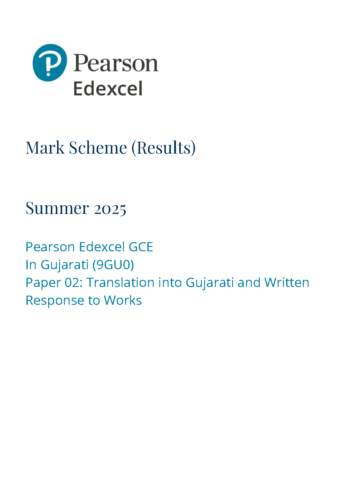 2025 Pearson Edexcel A Level Gujarati Mark Scheme Paper 2 (9GU0/02: Translation into Gujarati and written response to works)