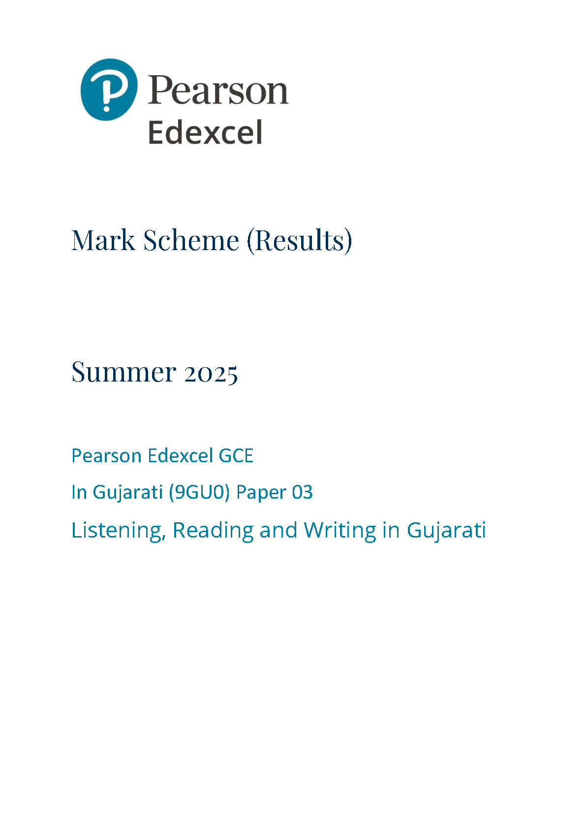 2025 Pearson Edexcel A Level Gujarati Mark Scheme Paper 3 (9GU0/03: Listening, Reading and Writing in Gujarati)