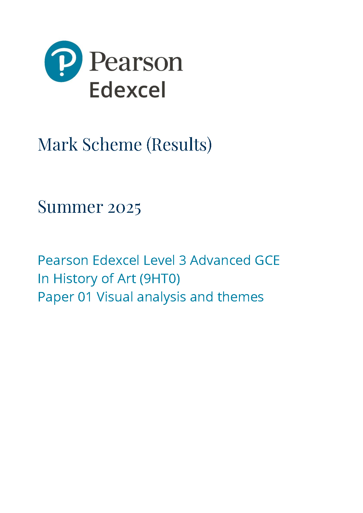 2025 Pearson Edexcel A Level History of Art Mark Scheme Paper 1 (9HT0/01: Visual analysis and themes)