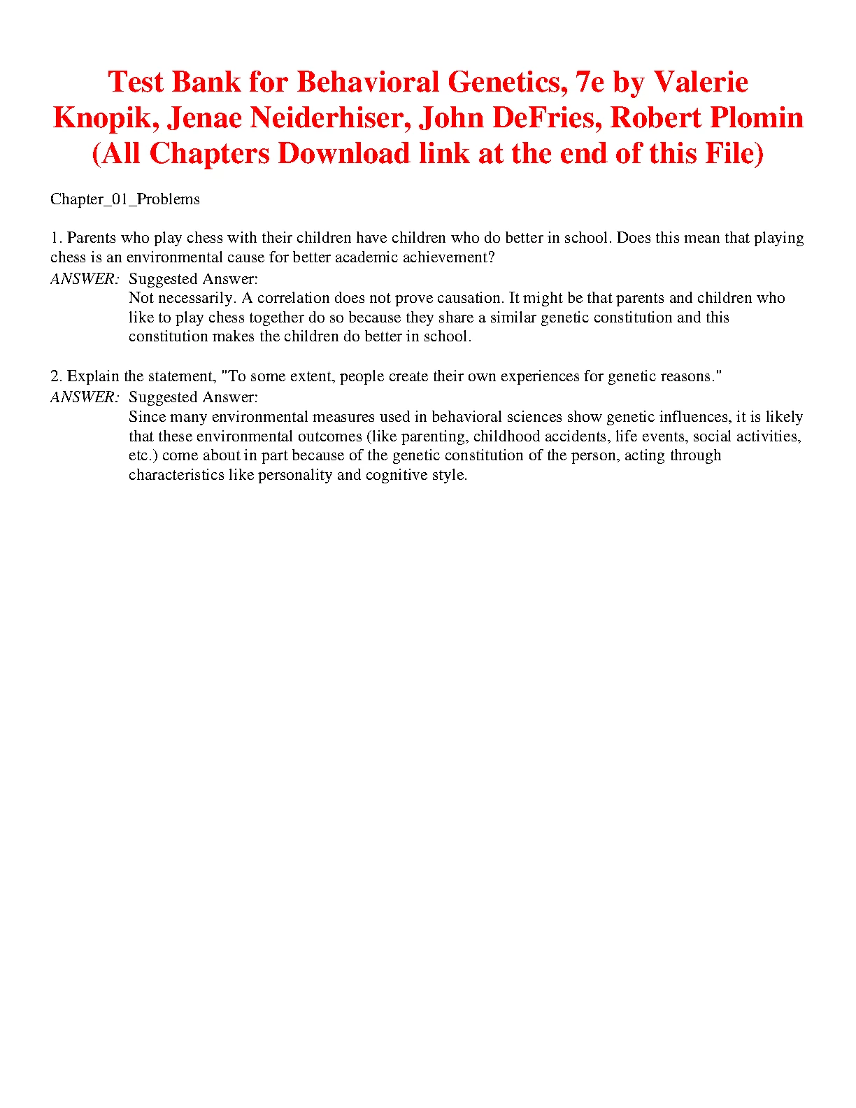 Test Bank for Behavioral Genetics, 7th Edition by Valerie Knopik, Jenae Neiderhiser, John DeFries, Robert Plomin (All Chapters Download link at the end of this File). DOWNLOAD on www.hackedexams.com INSTANTLY.
