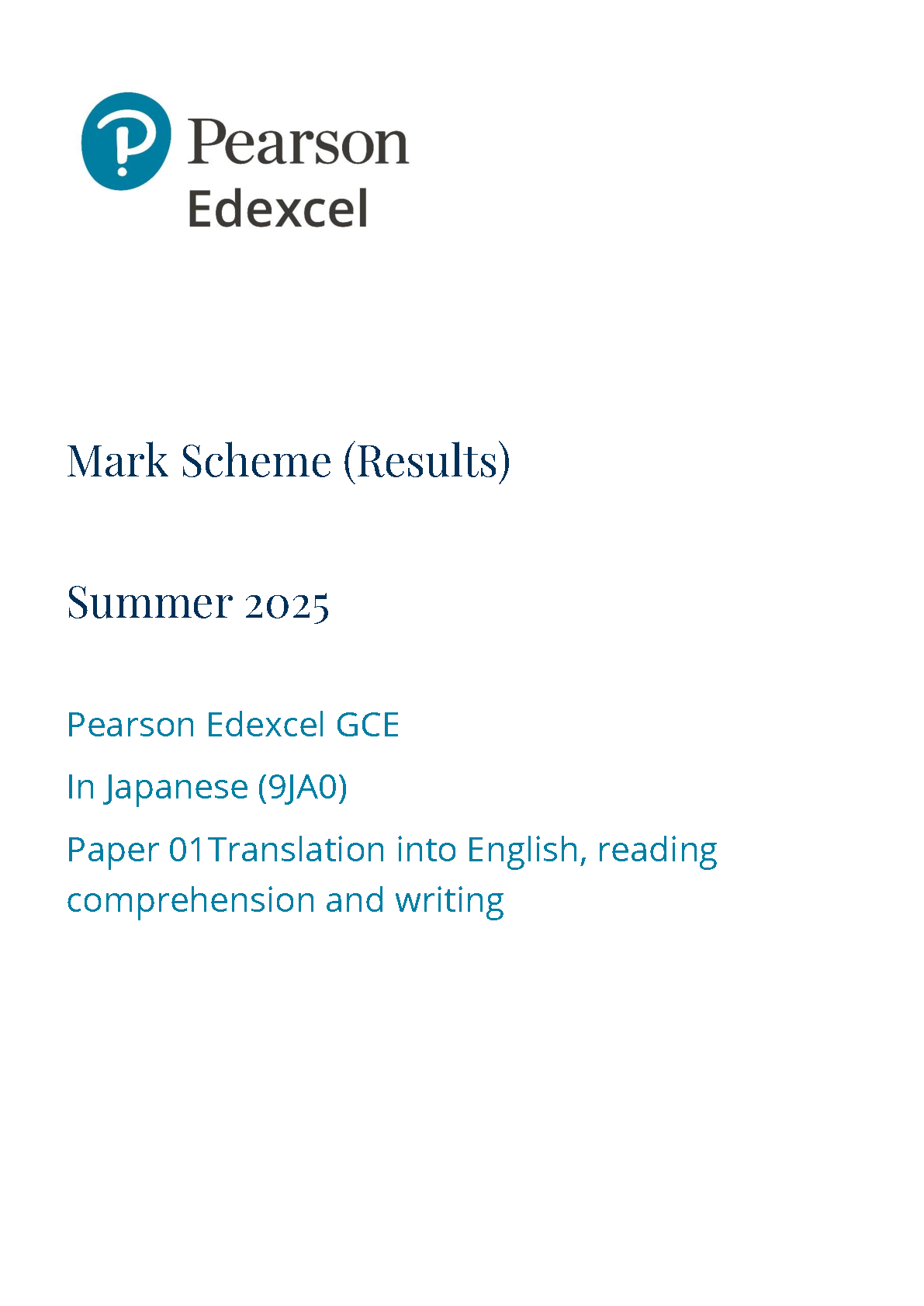 2025 Pearson Edexcel A Level Japanese Mark Scheme Paper 1 (9JA0/01)