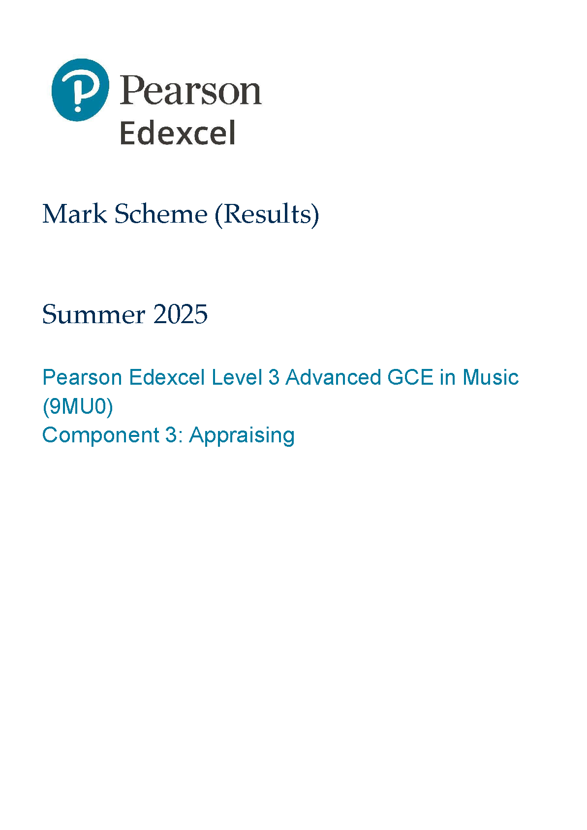 2025 Pearson Edexcel A Level Music Mark Scheme Component 3 (9MU0/03: Appraising)