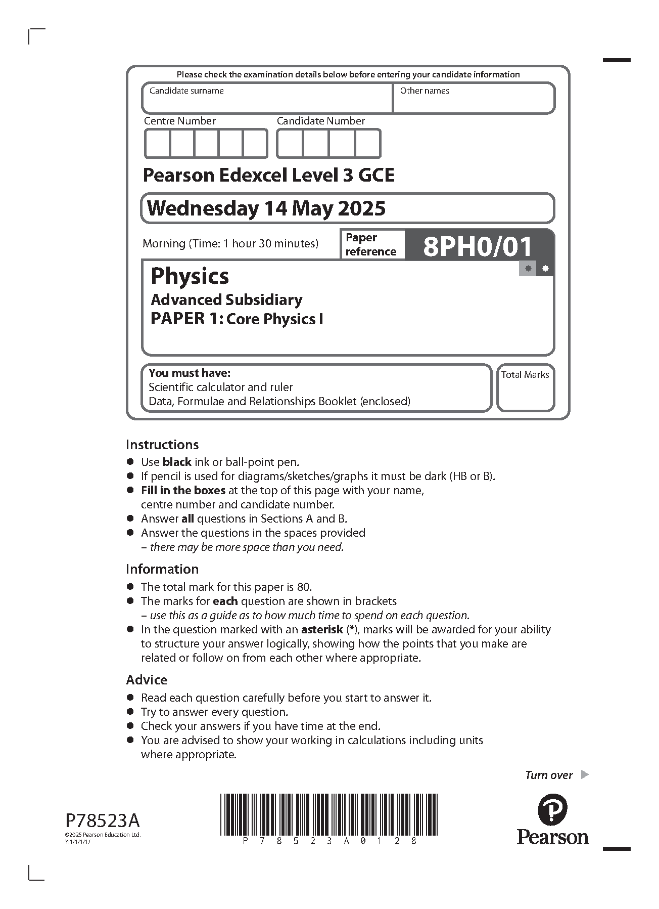 2025 Pearson Edexcel AS Level Physics Paper 1 (8PH0/01: Core Physics I)