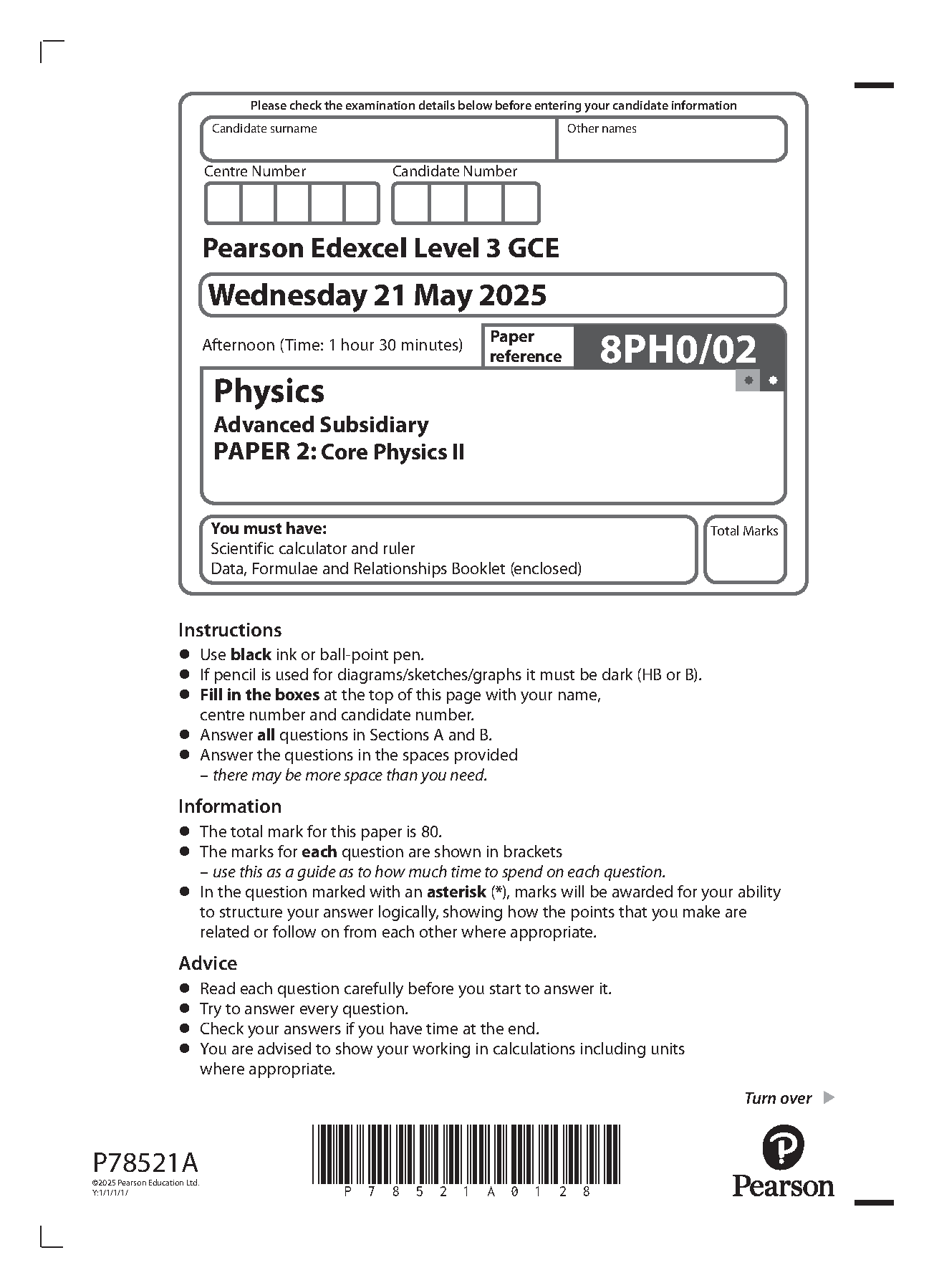 2025 Pearson Edexcel AS Level Physics Paper 2 (8PH0/02: Core Physics II)