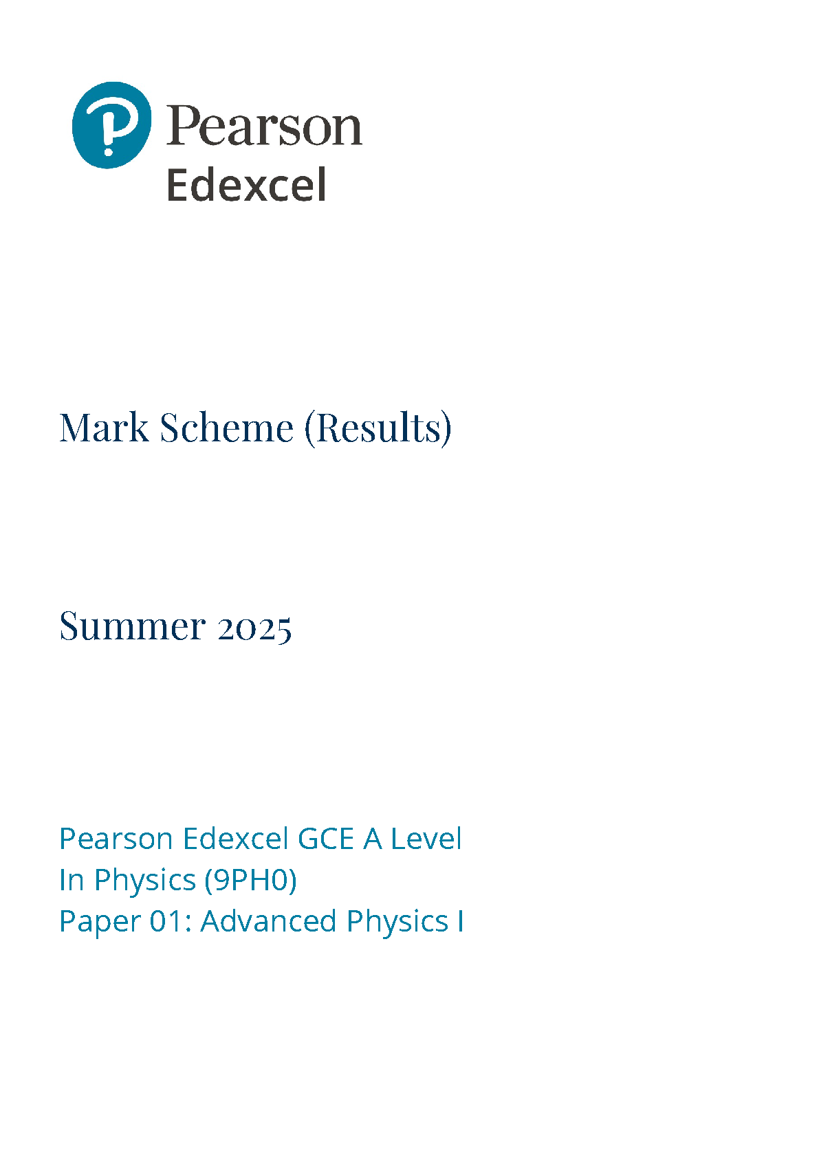 2025 Pearson Edexcel A Level Physics Mark Scheme Paper 1 (9PH0/01: Advanced Physics I)