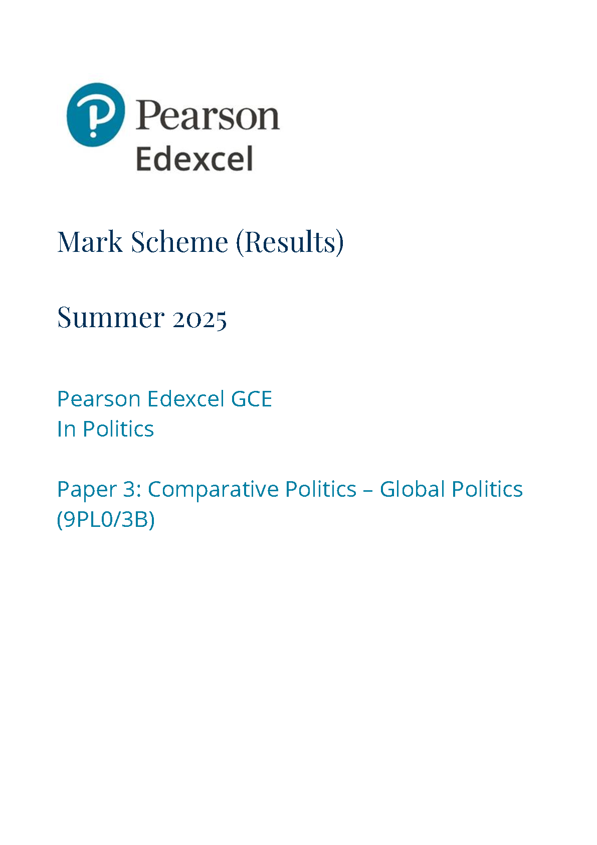 2025 Pearson Edexcel A Level Politics Mark Scheme Paper 3 (9PL0/3B: Comparative Politics – Global Politics)