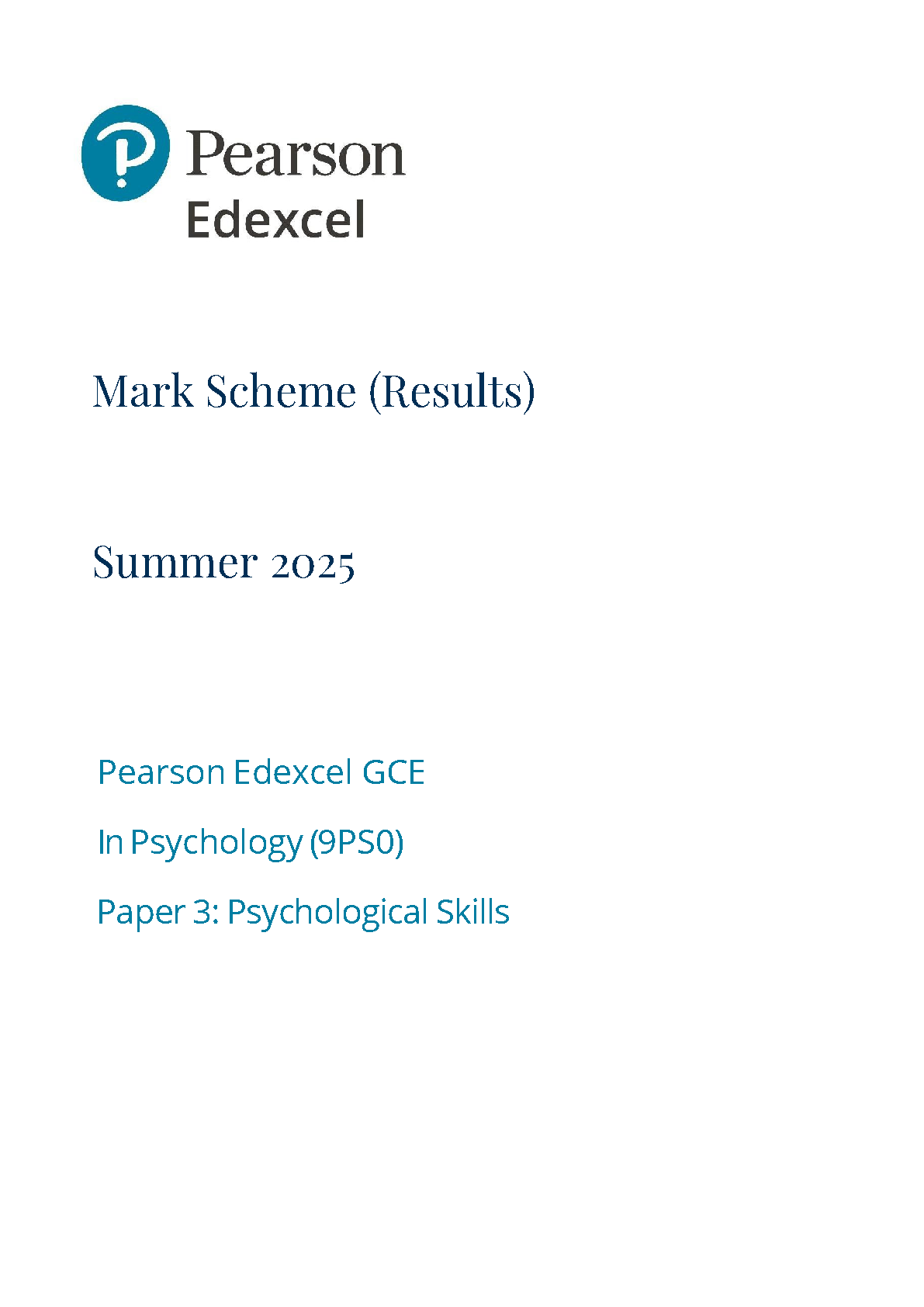 2025 Pearson Edexcel A Level Psychology Mark Scheme Paper 3 (9PS0/03: Psychological Skills)