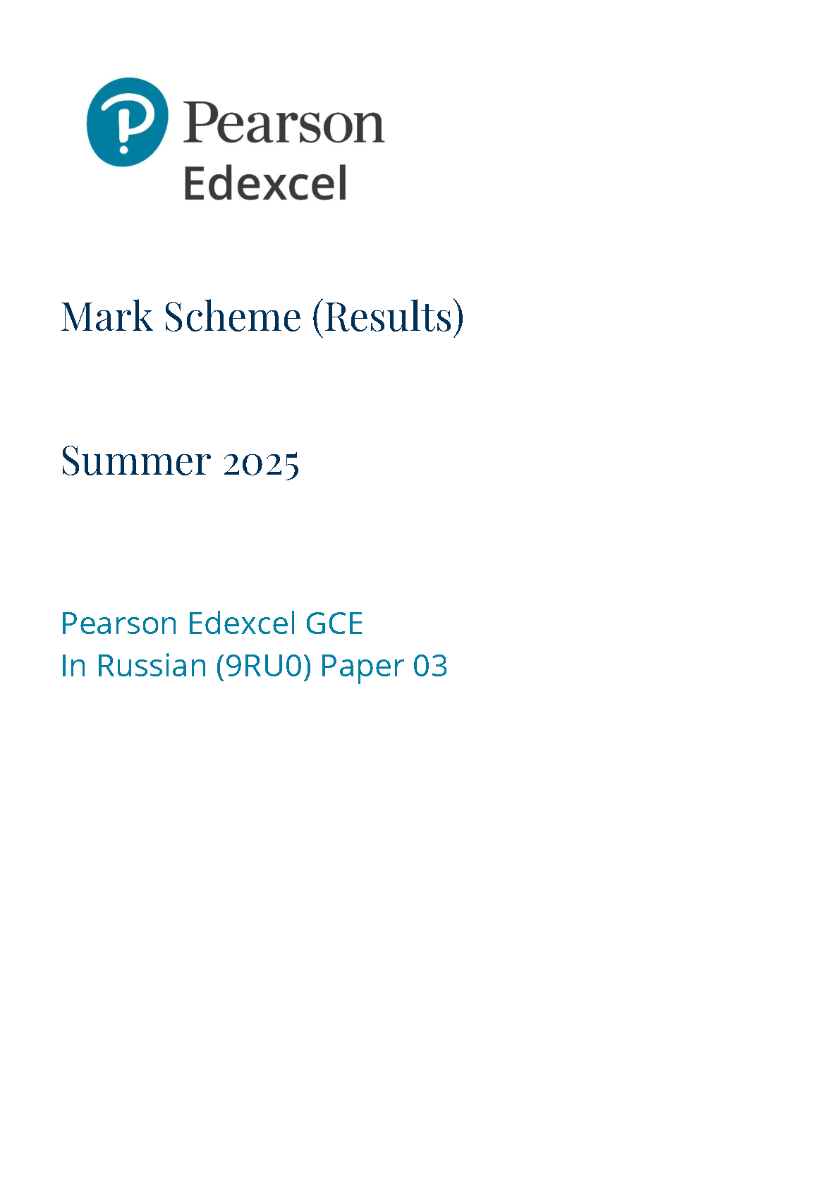 2025 Pearson Edexcel A Level Russian Mark Scheme Paper 3 (9RU0/03)