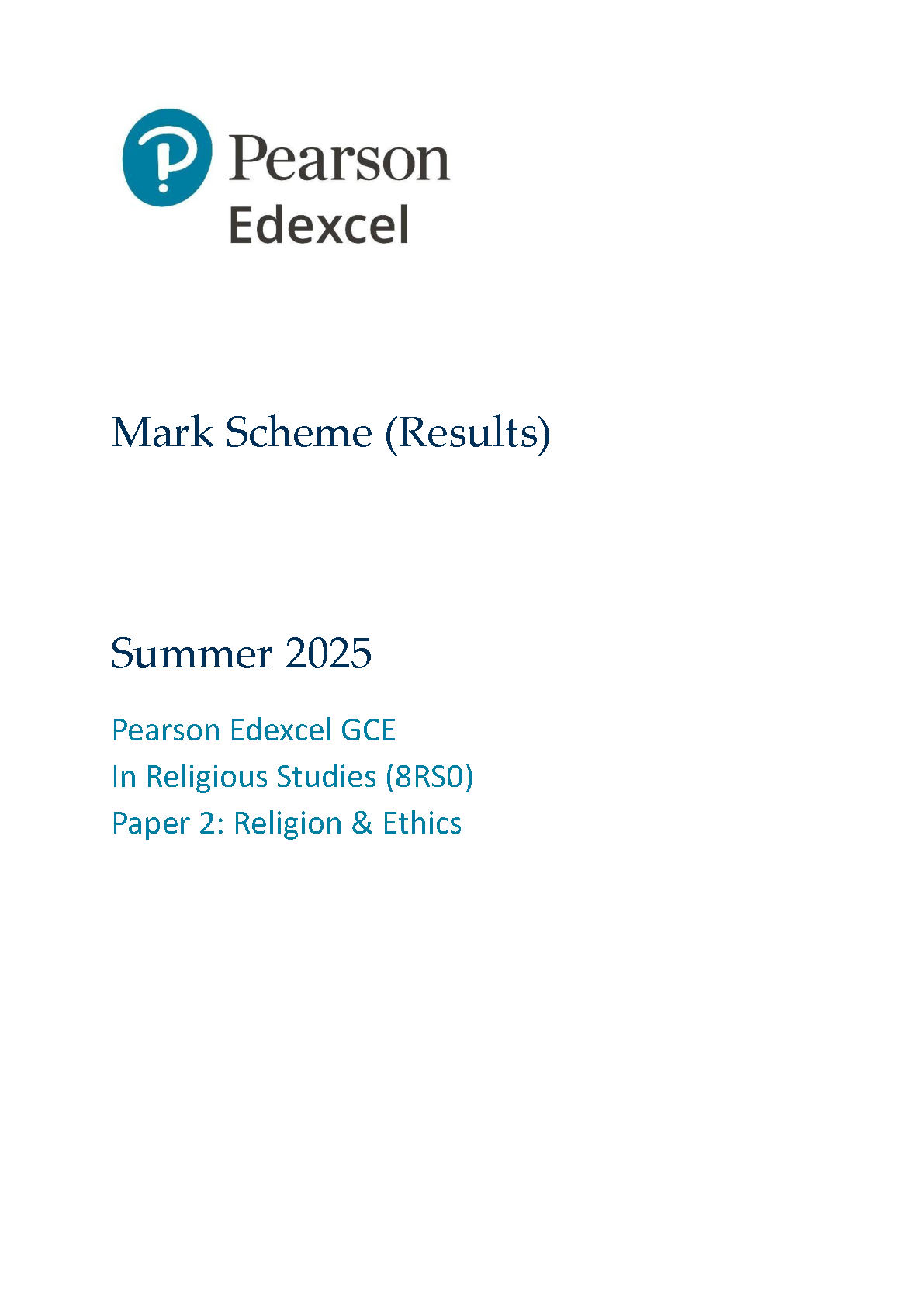 2025 Pearson Edexcel AS Level Religious Studies Mark Scheme Paper 2 (8RS0/02: Religion & Ethics )