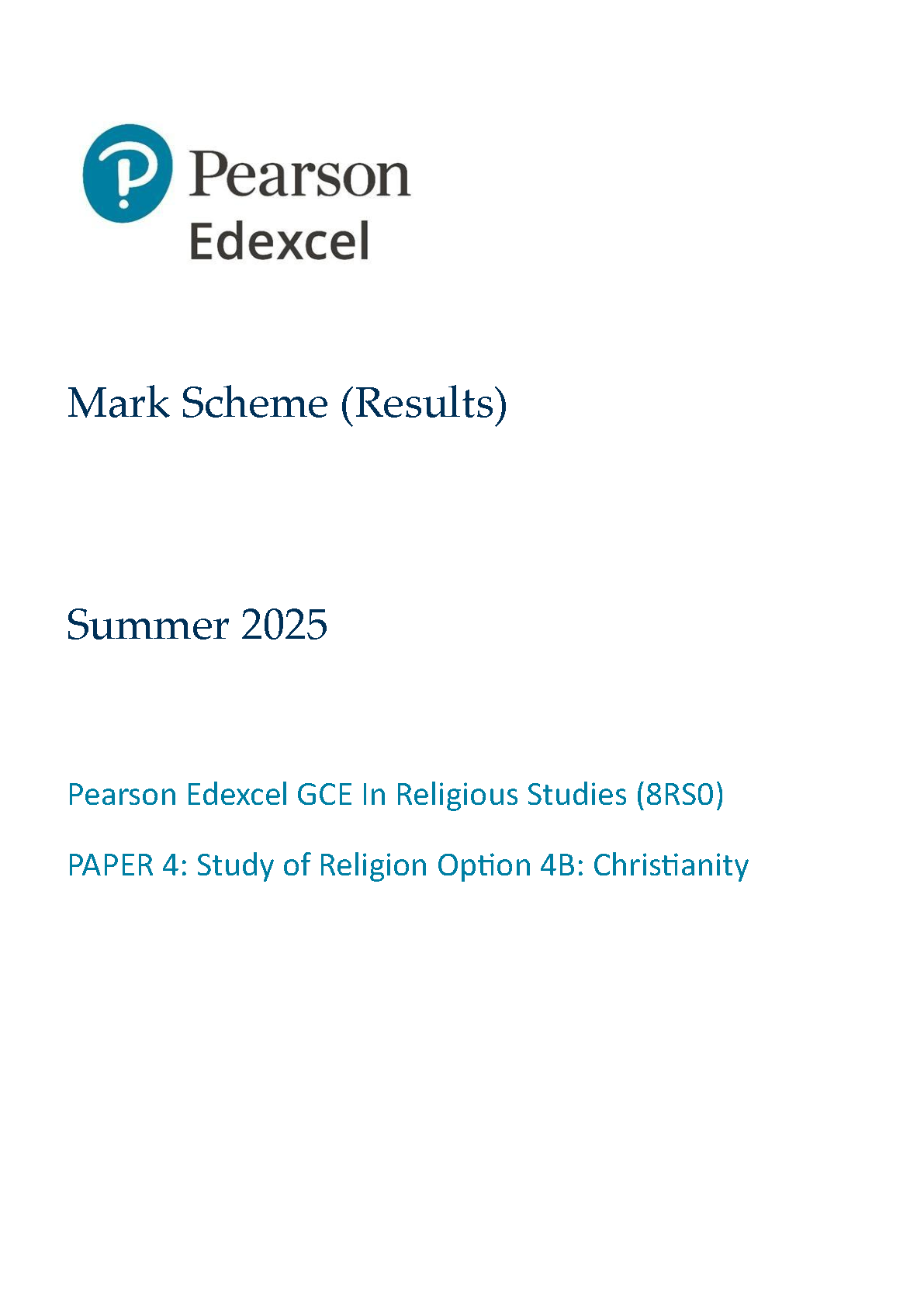 2025 Pearson Edexcel AS Level Religious Studies Mark Scheme Paper 4B (8RS0/4B: Study of Religion Option 4B: Christianity)