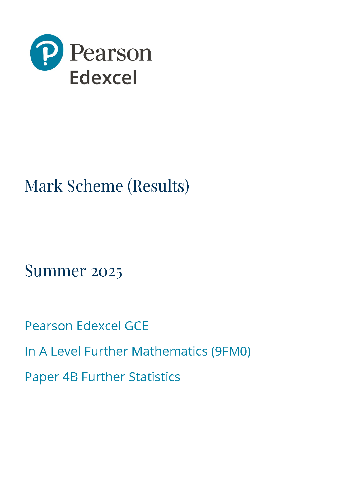 2025 Pearson Edexcel A Level Further Mathematics Mark Scheme Paper 4B (9FM0/4B: Further Statistics)