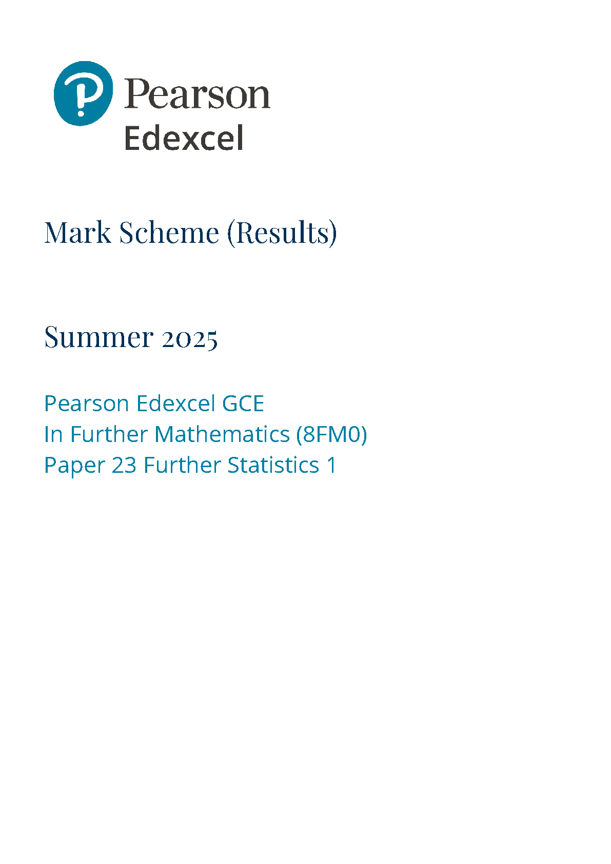 2025 Pearson Edexcel AS Level Further Mathematics Mark Scheme Paper 23 (8FM0/23: Further Statistics 1)