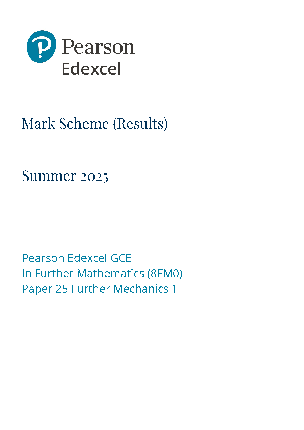 2025 Pearson Edexcel AS Level Further Mathematics Mark Scheme Paper 25 (8FM0/25: Further Mechanics 1)